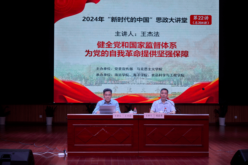 6月5日,校党委委员、纪委书记王杰法在梅山大会堂主讲题为《健全党和国家监督体系--为党的自我革命提供坚强保障》的“形势与政策”课。讲座由户外露出 党委书记刘忠秀主持,梅山校区管委会、户外露出 、海洋学院、食品科学与工程学院近800名师生参加讲座。