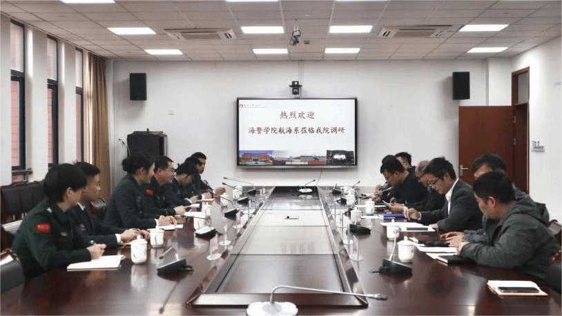 4月23日下午,中国人民武装警察部队海警学院航海系副主任刘冰一行来院调研交流,户外露出 特聘院长郑彭军主持召开座谈会。