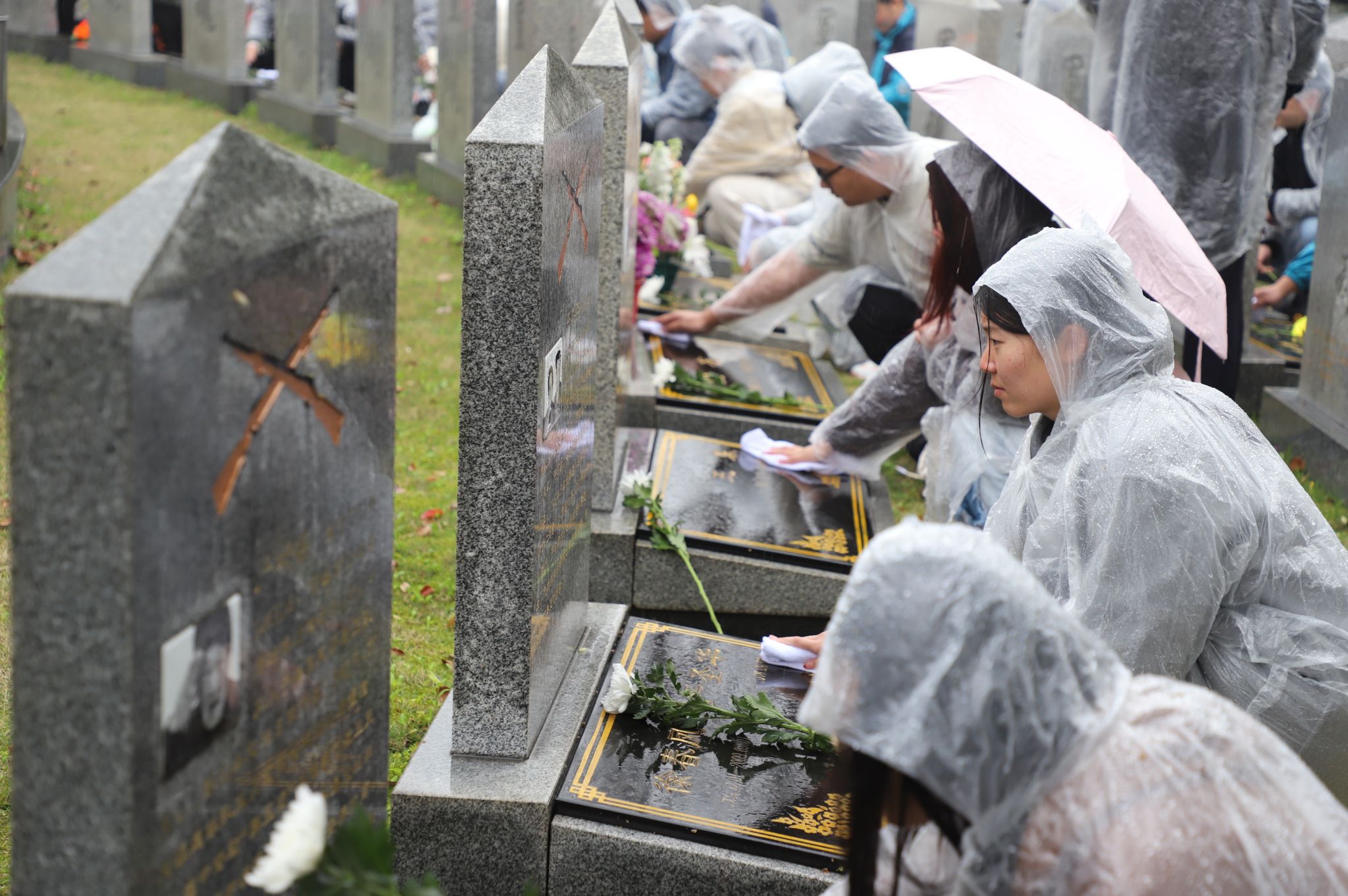 3月31日上午8时30分,哀思仪式在十声警世钟声中拉开序幕。首先在嘹亮的国歌声中,由梅山校区国旗护卫队成员升起了五星红旗,宁波市各界代表向烈士纪念碑敬献花篮。紧接着,宁波市殡葬协会会长念诵祭文,并向与会者讲述了埋葬在纪念园区内的老兵们的相关史实以及中国军人的抗战历史。详实感人的话语勉励大家铭记历史,发奋图强。随后,全体与会者整装肃立,集体默哀一分钟,向抗战英烈们致以最深切的哀悼和敬意。