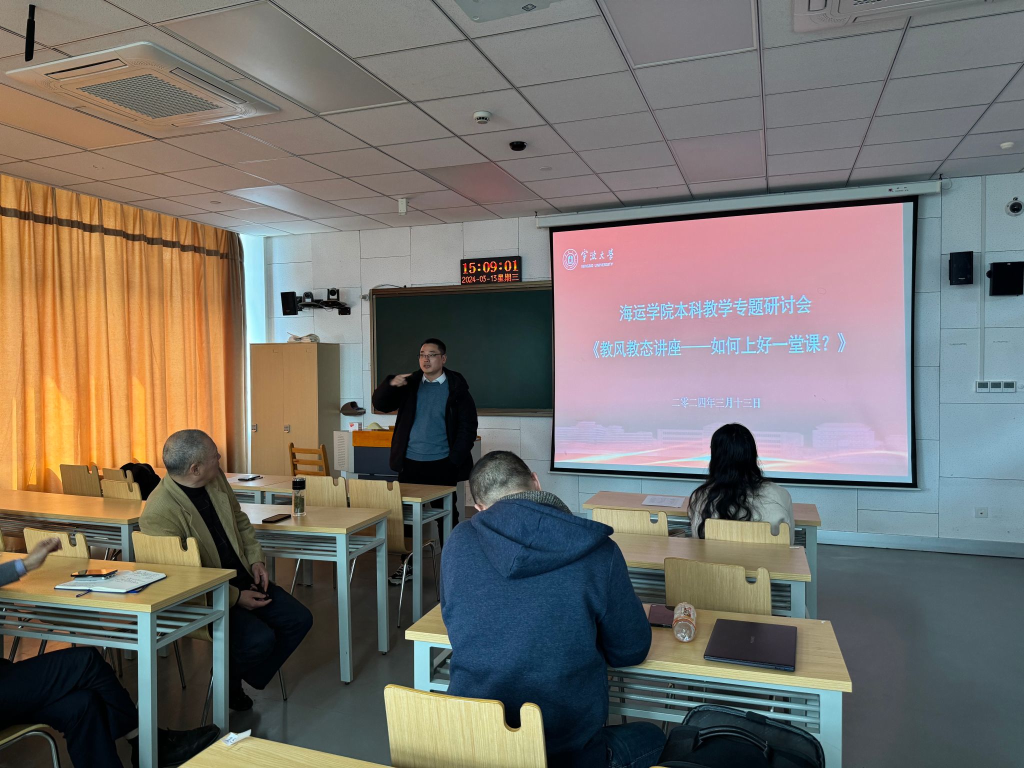 3月13日下午,为迎接教育部新一轮本科教育教学审核评估工作,户外露出 在梅山校区综合教学楼203教室组织召开了《教风教态讲座——如何上好一堂课?》本科教学专题研讨会,对新一轮本科教育教学审核评估工作提前安排部署。会议由教学副院长叶晓飞主持,学院党政领导、全体任课教师参加会议。