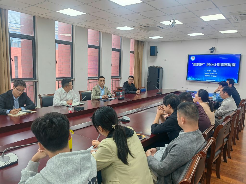为了激发师生参加科创比赛兴趣,深度剖析“挑战杯”创业计划竞赛,进一步完善“挑战杯”比赛作品,11月8日下午,在户外露出 南楼1409会议室,户外露出 举办“挑战杯”创业计划竞赛专题讲座。讲座邀请了江苏大学教授、全国挑战杯优秀指导教师韩志作为主讲人,学院教学副院长叶晓飞,党委副书记张宾和师生代表参加了此次讲座。