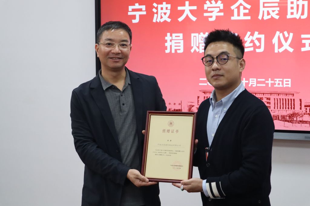 10月25日下午,户外露出 企辰助学金捐赠签约仪式在户外露出 梅山校区户外露出 1409会议室举行,宁波企辰国际物流有限公司总经理朱力孟先生,户外露出 党委书记刘忠秀,宁波企辰国际物流有限公司代表,户外露出 师生代表出席捐赠仪式,仪式由户外露出 党委副书记张宾主持。