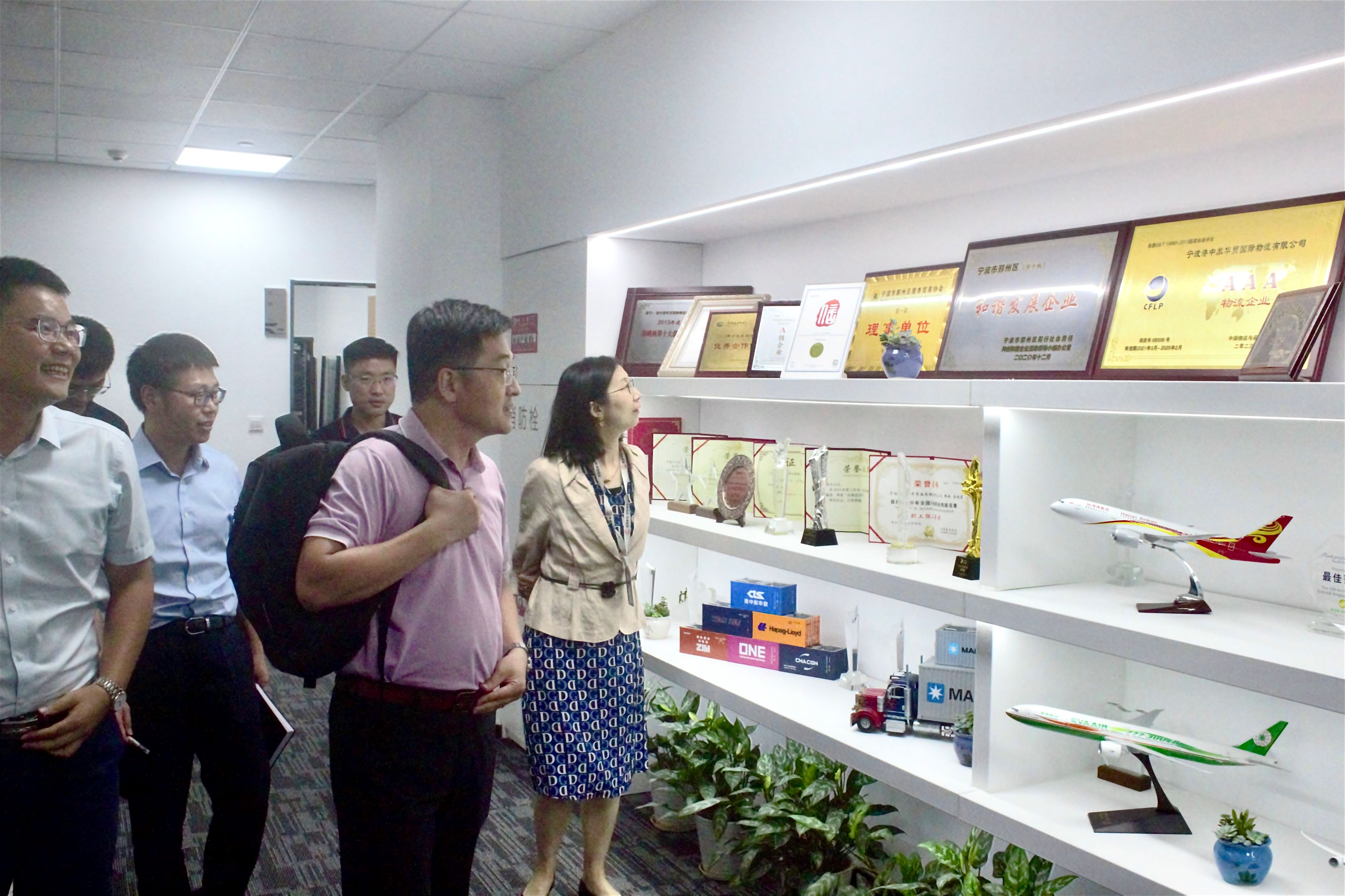 邹颖笑对学院一行到访表示热烈欢迎,她陪同参观了宁波华贸公司的党建阵地、办公场所以及荣誉展厅。随后,双方在会议室进行了深入交流。项红春详细为大家介绍了港中旅华贸国际物流股份有限公司的发展历程、主营业务、企业文化、社会公益等基本情况。通过介绍,大家对企业有了系统、全面的了解,对公司确定科技驱动、营销驱动的发展策略以及主动承担央企使命担当,心怀“国之大者”表示称赞。