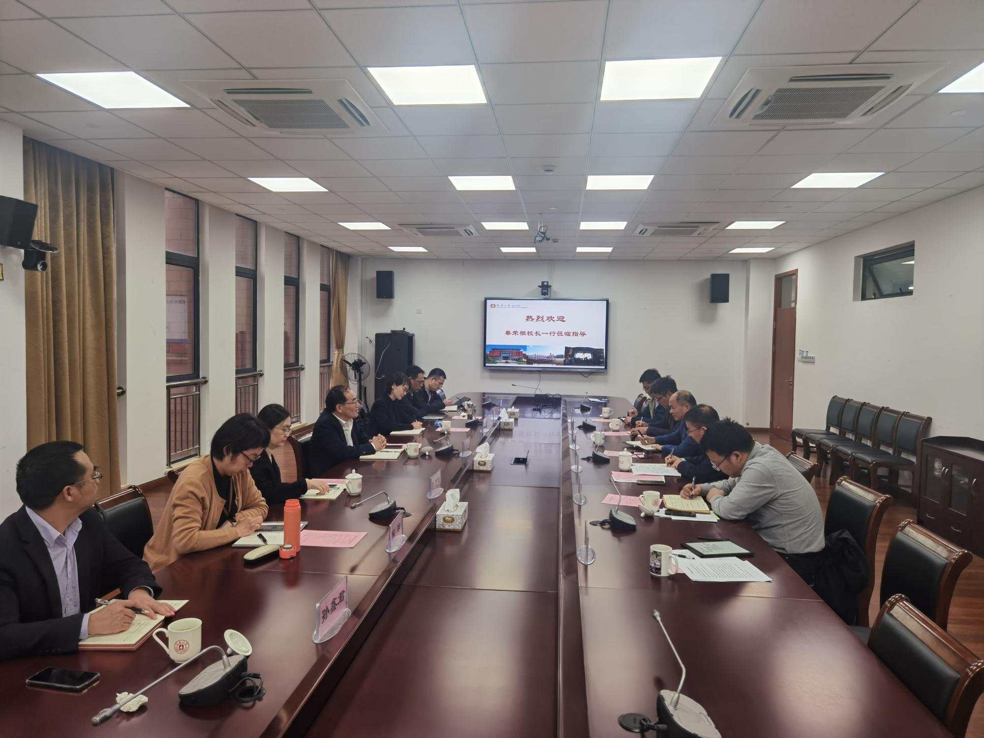 蔡校长对学院近年来取得的成绩表示肯定。他指出,学院要切实加强领导班子建设,重视学院发展规划的顶层设计,发挥学院特色亮点,为师生发展创造条件,增加师生获得感、成就感,破解办学难点;要加强高层次人才的引育工作,发挥顶尖人才的引领作用,凝聚高水平学科特色方向,让高层次人才引得进、留得住、用得好;要重视科学研究与地方服务工作,发挥行业和校友的作用,加强科研工作,更好地为地方发展服务。