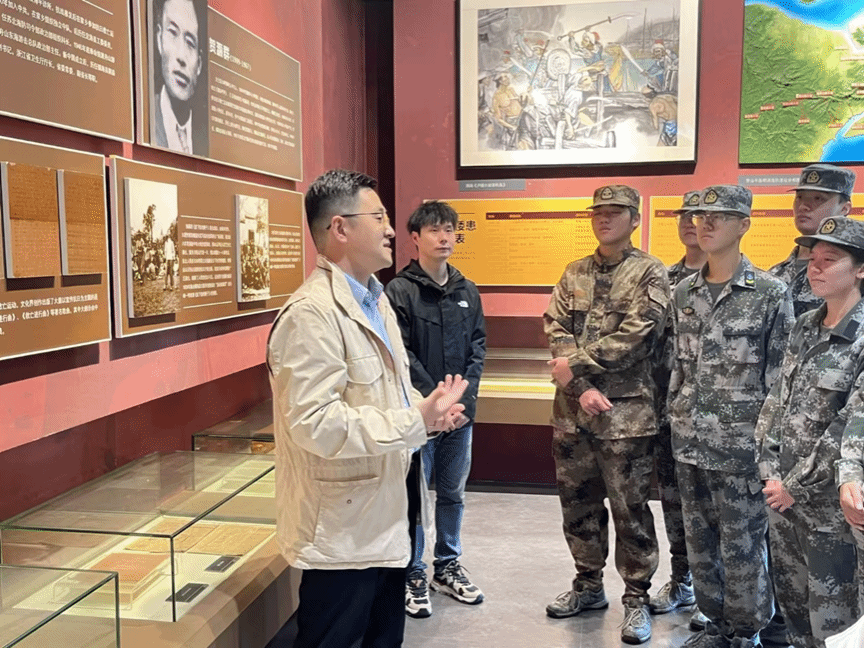 纪念馆内,从明清海防到社会主义建设,无数先烈与先辈的光辉事迹跃然眼前。五个展区“御外侮,海防前哨”“赴国难,同仇敌忾”“不屈不挠,敌后抗战”“求解放,前仆后继”“谱新篇,舍生取义”,通过图文、实物和视频等多种形式,生动再现了这片红色土地上,从抗倭斗争到抗日战争、解放战争,再到新中国建设时期的英雄史诗。张宾副书记在参观中强调,正是革命者们坚守廉洁、艰苦奋斗,才赢得了革命的最终胜利,这份精神是新时代海运学子应当继承和发扬的宝贵财富。