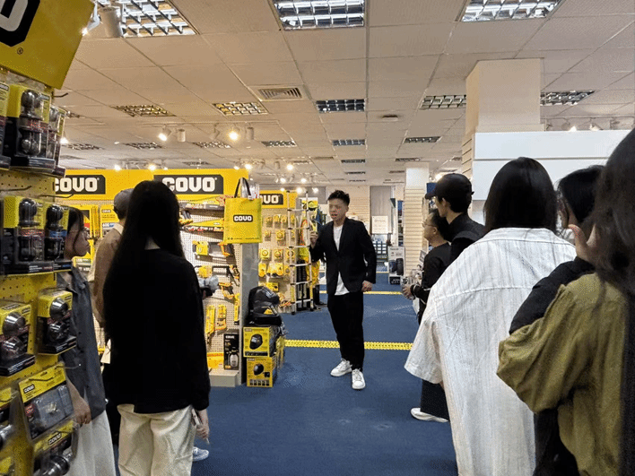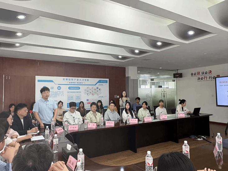 活动伊始,户外露出 师生一行在工作人员引导下参观了公司样品间,近距离观摩了家居用品、文创产品等核心出口商品,了解国际贸易业务流程及产品设计理念。随后,公司人力资源总监通过专题短片和图文展示,系统介绍了美博集团从初创到跻身行业龙头的发展历程,重点分享了企业在跨境电商、品牌出海等领域的创新实践。