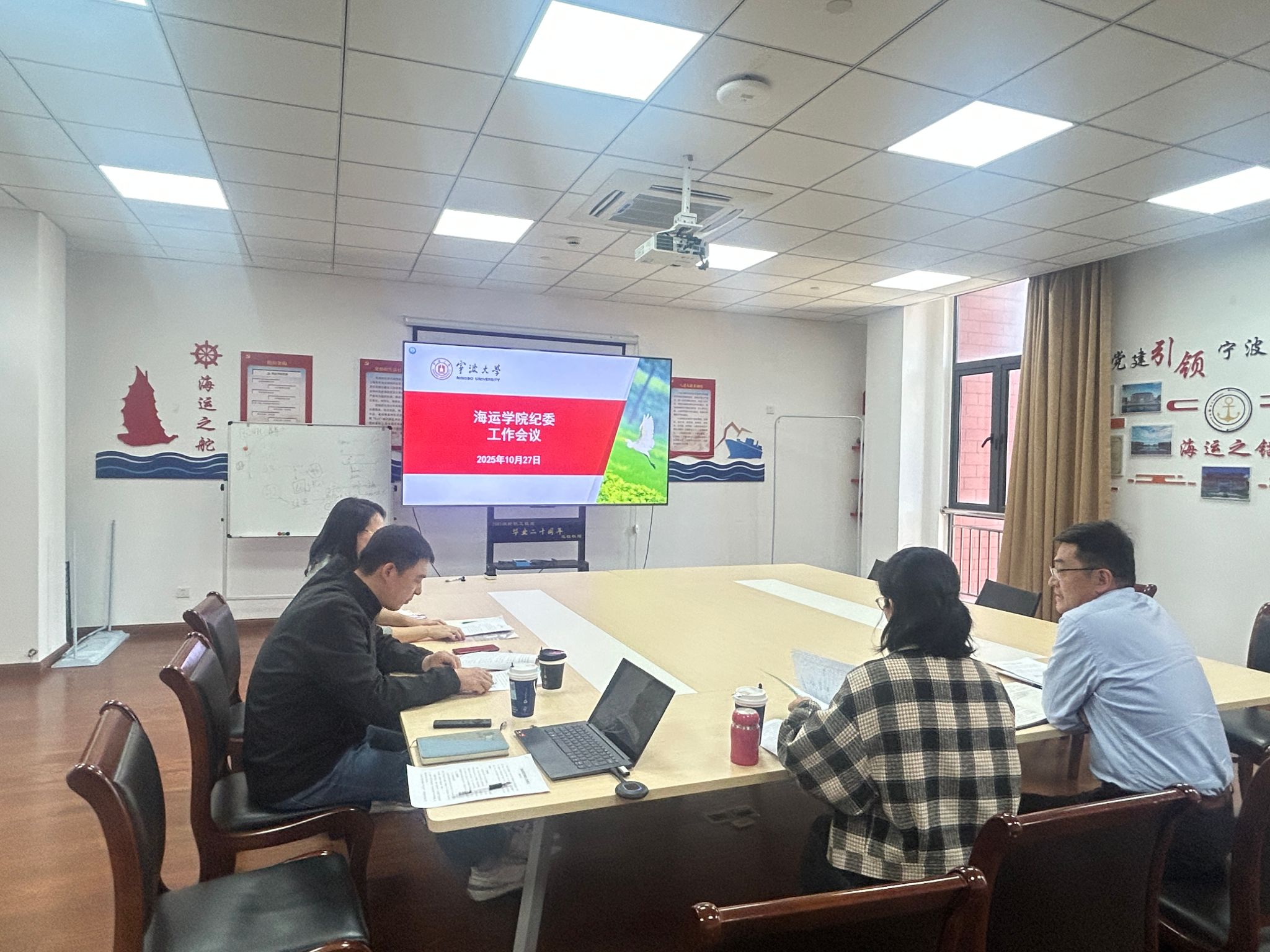 2025年10月27日,海运学院纪委在海运南楼1401会议室召开纪委工作会议。学院党委副书记、纪委书记张宾同志主持会议,全体纪委委员参加会议。