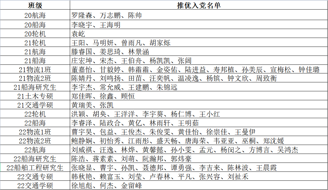 经各团支部推荐,学院团委审核,海运学院2022-2023学年第二学期推优入党名单如下: