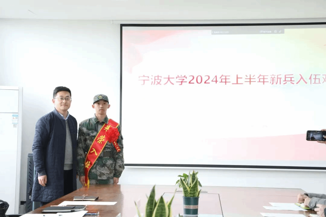 参军报国,青春无悔。3月12日下午,户外露出 2024年上半年新兵入伍欢送会在锦绣学生活动中心402举行。3名应征入伍学生参加了欢送会,户外露出 2023级船舶与海洋工程专业魏铭杰同学光荣在列。会上,学院党委副书记张宾为其佩戴红花并送上殷切祝福,学院也为他精心准备了小礼物。