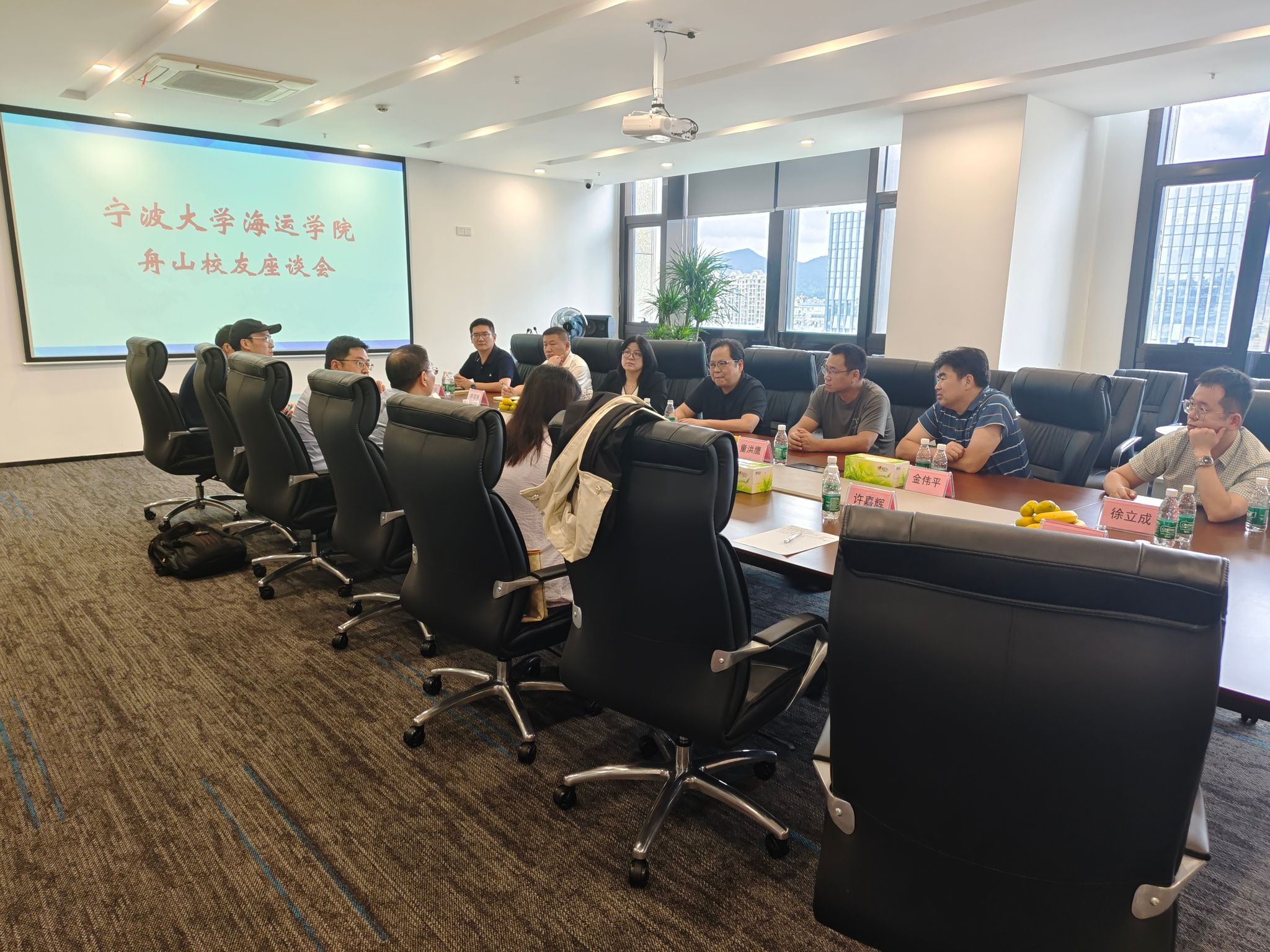 10月16日,宁波大学海运学院舟山校友座谈会在舟山嵊泗国海航运有限公司会议室举行。海运学院党委书记刘忠秀、党委副书记张宾、学院青年教师代表、学生代表,海运学院校友会主席朱金红、秘书长郑芳与舟山校友代表一起“叙过去、话未来”,共同回忆青春岁月,共话未来宏图。