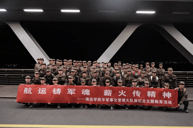 为深切缅怀革命先烈,传承长征与抗美援朝精神,切实将红色教育与海运专业特色、半军事化管理要求深度融合,10月22日,宁波大学海运学院半军事化管理大队以“航运铸军魂 薪火传精神” 为主题,在梅山校区操场、宁波梅山湾沿海中线及泰昌祥报告厅开展主题教育活动。学院半军管大队指导老师、教官及全体学员全员参与,在徒步践行与光影追忆中,筑牢爱国信仰,凝聚航运报国力量。