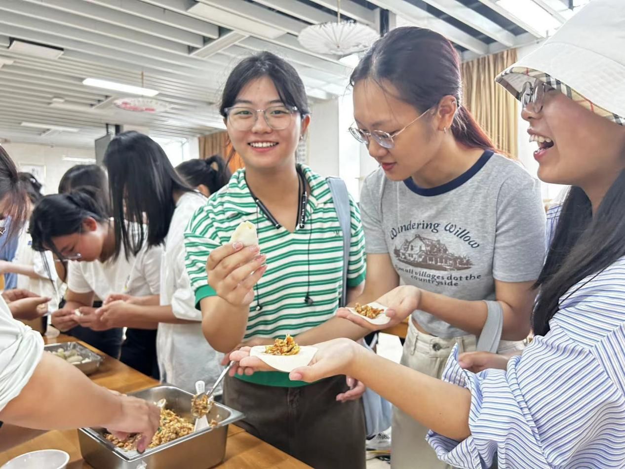 活动由海运学院分工会主席苖鹤主持,学院46位老师和62位2024级新生代表参加;活动从上午10点一直延续到下午近1点钟。宁波大学餐饮服务中心的老师们还给参加活动的每位师生赠送了庆中秋“宁大月饼”礼盒。活动现场洋溢着浓浓的节日气氛。大家分组协作,和面、擀皮、包馅,每一道工序都充满了欢声笑语;师生们或交流包饺子的心得,或品鉴饺子、月饼的形状、风味,或分享家乡的中秋习俗,提升了技艺、加深了情谊,其乐融融。