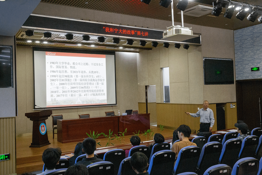 5月29日,宁波大学“我和宁大的故事”系列讲座第七讲在海运学院泰昌祥报告厅举行,退休教师王容老师受邀担任主讲嘉宾,海运学院全体学生骨干、入团积极分子、入党积极分子、党员代表参加此次讲座。